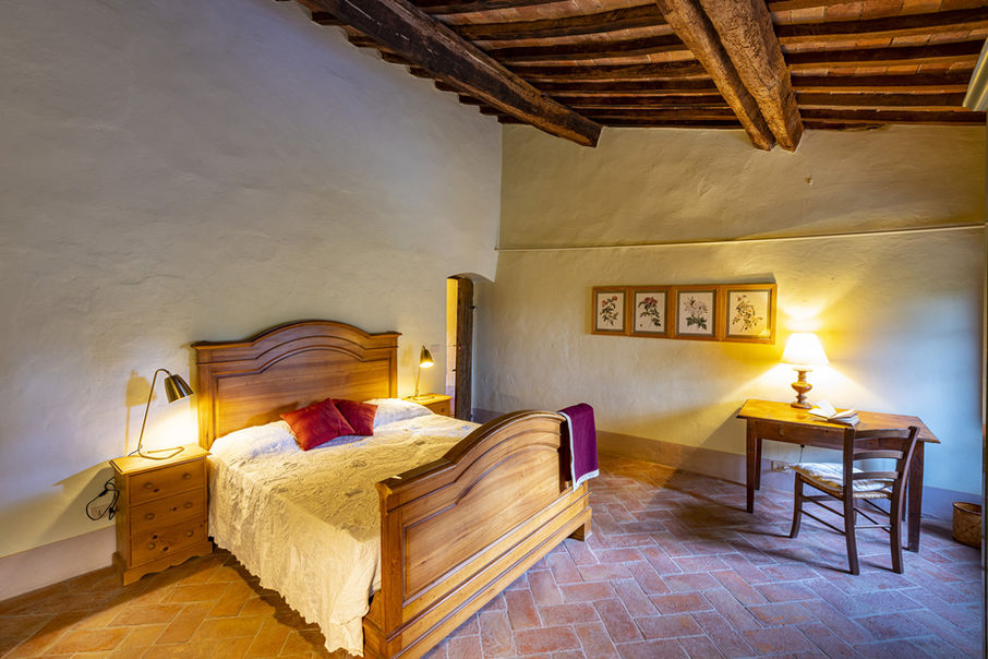 Dieses Bauernhaus bietet bis zu acht Personen Platz und erstreckt sich über zwei Stockwerke. Im Erdgeschoß liegt die geräumige Küche mit einem großen offenen Kamin, ein schönes Wohnzimmer, ein Doppelbettzimmer und ein Bad mit Wanne. In der Nähe der Eingangstür befindet sich ein kleiner zum Waschen umgestalteter Abstellraum mit Waschmaschine. Im ersten Stock liegt ein Doppelbettzimmer, zwei Zweibettzimmer und drei Bäder, zwei mit Dusche und ein mit Wanne. Casa Fontaccia hat eine eigene Heizung für die kühlere Jahreszeit und die Schlafzimmer sind mit Deckenventilatoren ausgestattet.